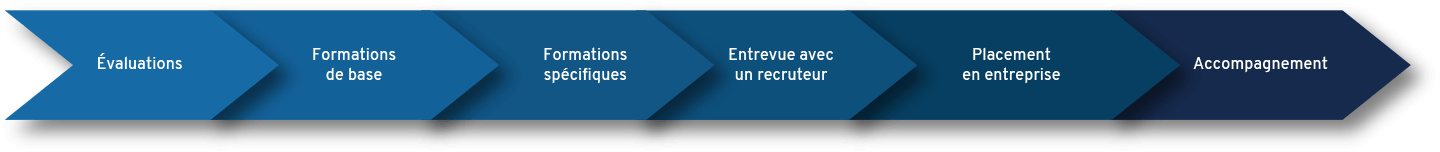 Nous avons à cœur votre réussite professionnelle et nous sommes d’avis que celle-ci passe notamment par un accompagnement à chacune des étapes du processus. Que vous soyez déjà placé en entreprise ou non, nous nous assurons que vous puissiez continuer de développer vos compétences. En tout temps, nous mettons à votre disposition des formations supplémentaires, nous vous donnons accès à des formateurs spécialisés et nous répondons à toutes vos questions.